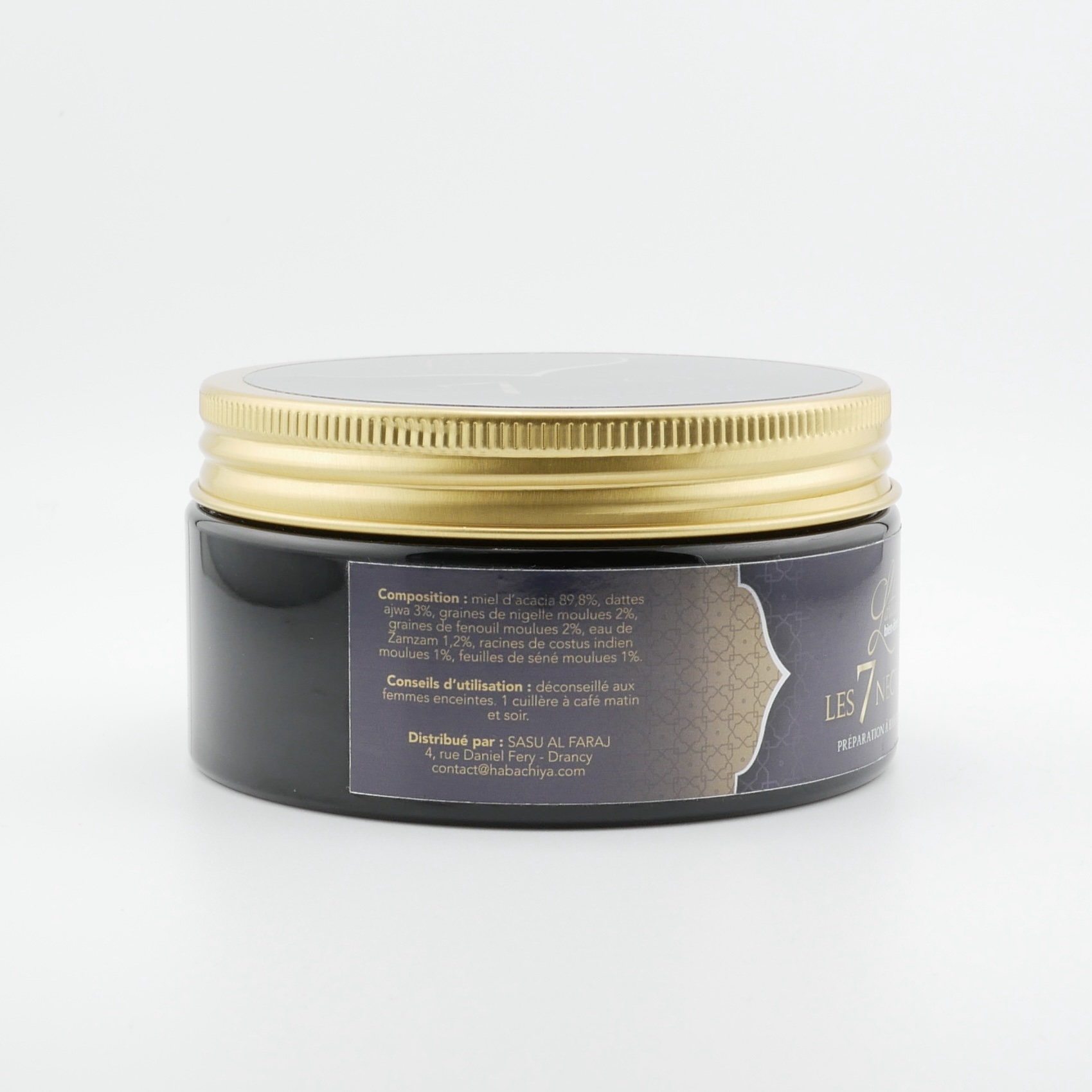 Préparation à base de miel, nigelle moulue, costus, séné, fenouil, eau de Zamzam, dattes ajwa.