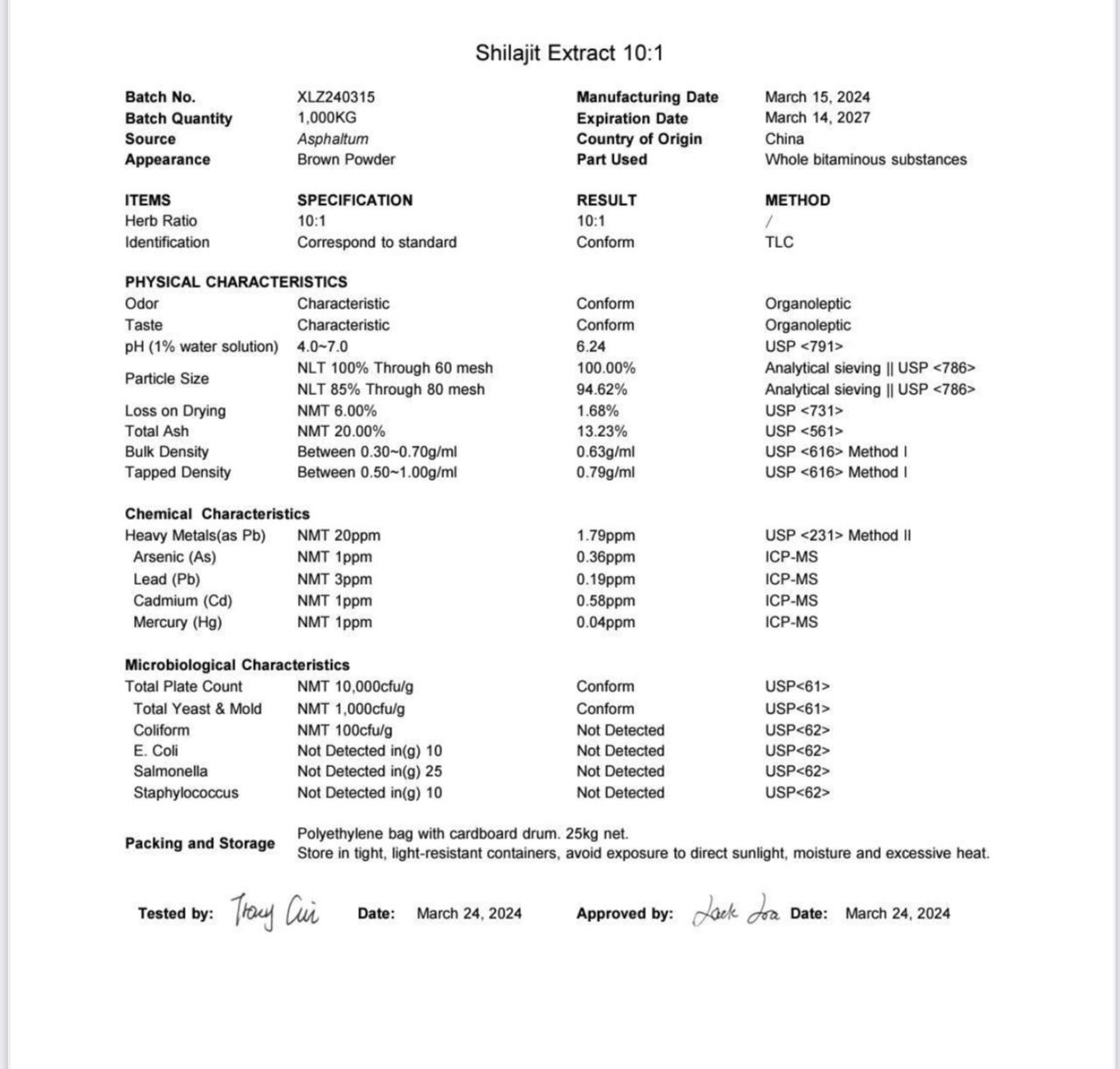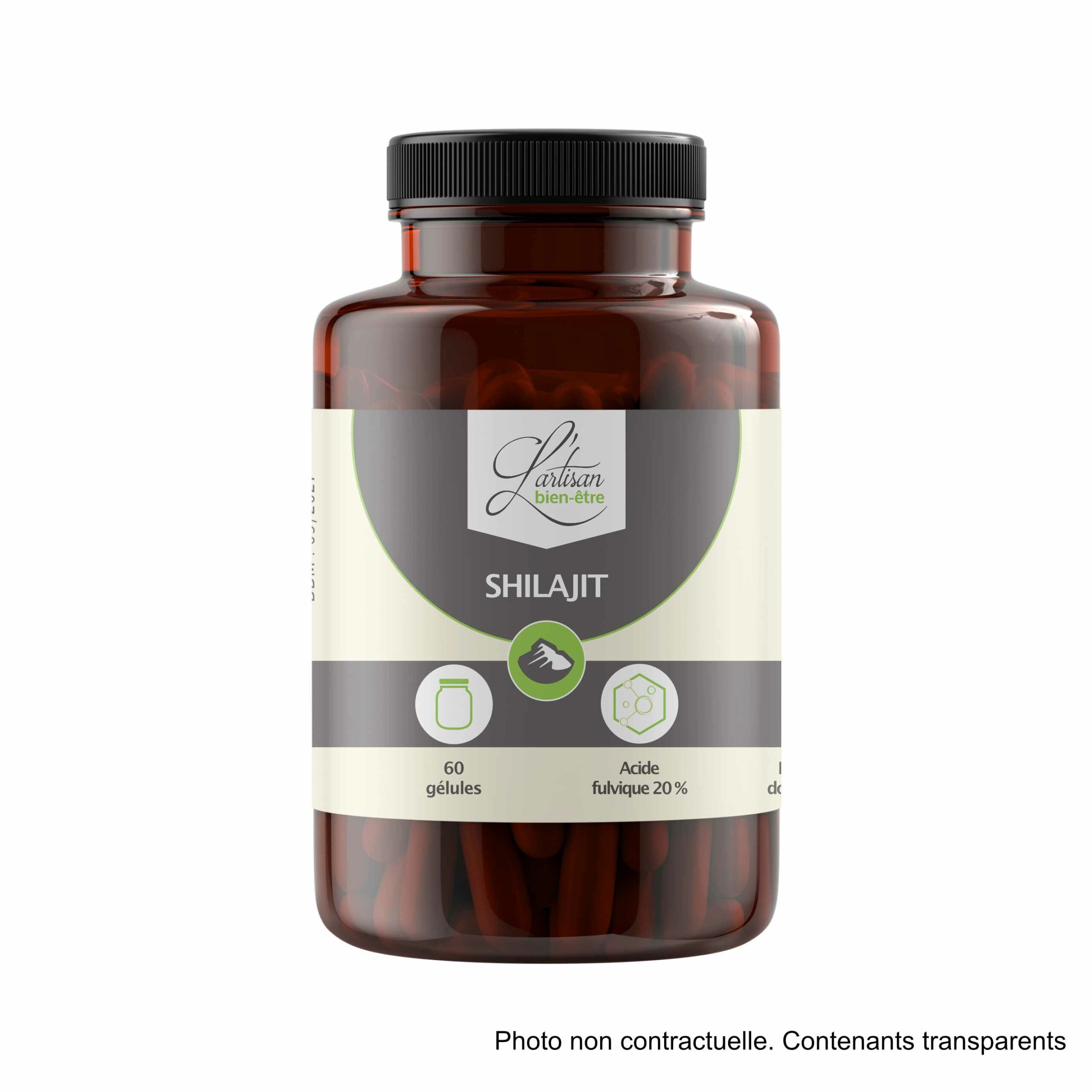 Ingrédients pour 1 gélule : enveloppe HPMC végétale 76 mg, extrait de shilajit (RPC) 500 mg.